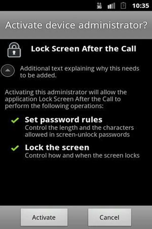 and security > Select device admin > Lock after called