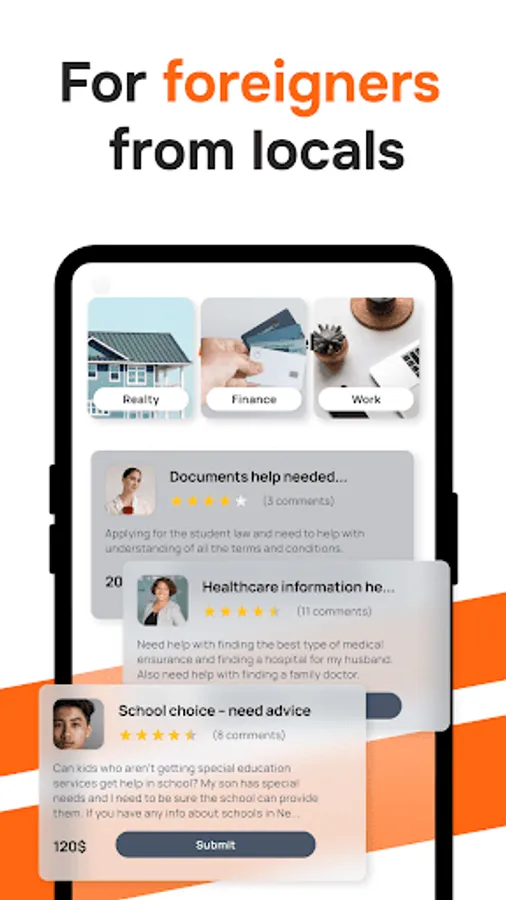 Create tasks and hire freelancers to solve local problems in a new country. Local freelance specialists earn by completing tasks and helping foreigners adapt.