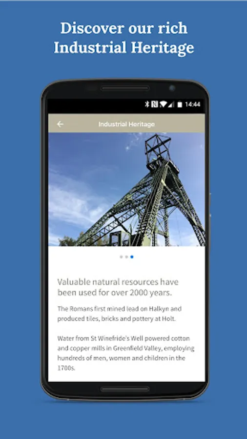 The app makes use of beacon technology to show relevant information that's nearby when you're exploring North East Wales. The app content is available in both Welsh and English.