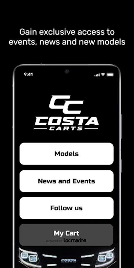 Join the Costa Carts family and download our free app! Get the latest carts news, event updates, and explore advanced features like optional telemetry services.
