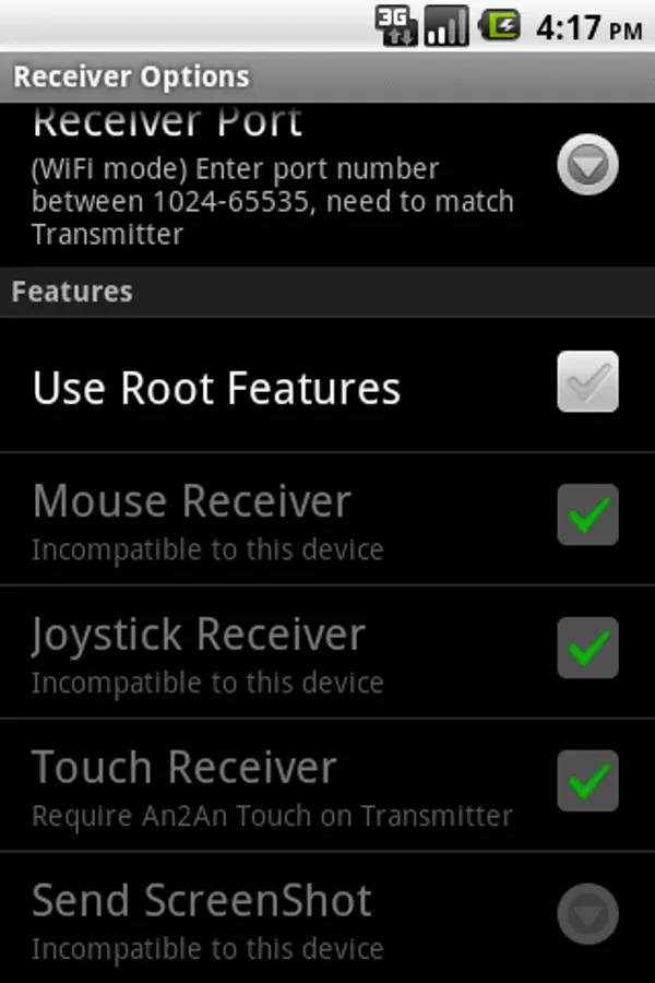 3. Enable "Use Root Features" on Receiver device, and grant root permission.