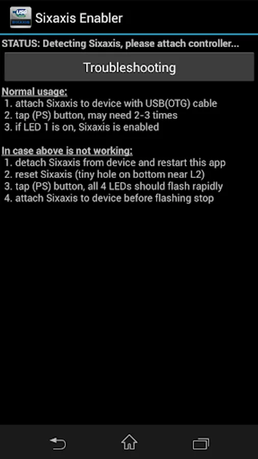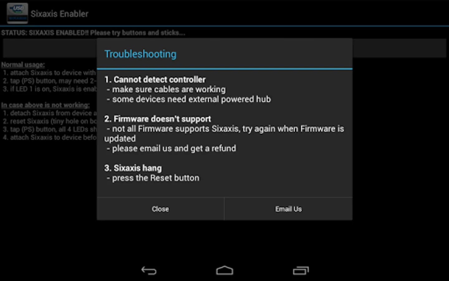 4. if you have ever installed any other apps which can work with PS3 controller directly, you may need to uninstall them.
