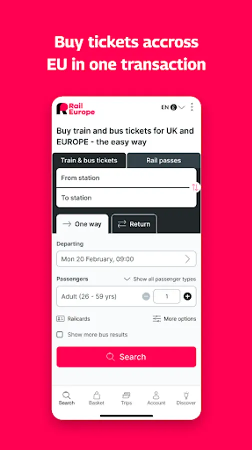 •Apply railcard and loyalty discounts in multiple countries to ensure the cheapest tickets