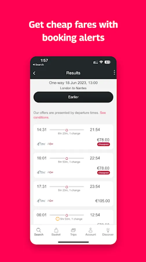 Our travel app can help you find ways to travel cheaply. You can even use your railcard for more travel discounts on cheap tickets. Decide which currency to use to pay for your ticket to guarantee the cheapest ticket price. You can even set booking alerts to make sure you never miss out on the cheapest tickets.