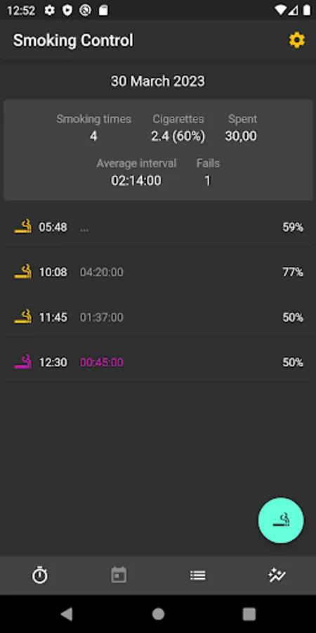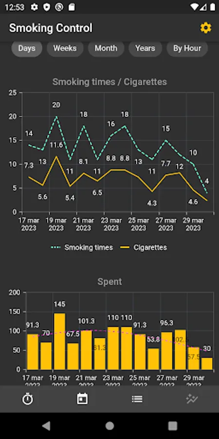 — Convenient graphs will help you evaluate the achievements and progress in your smoking.
