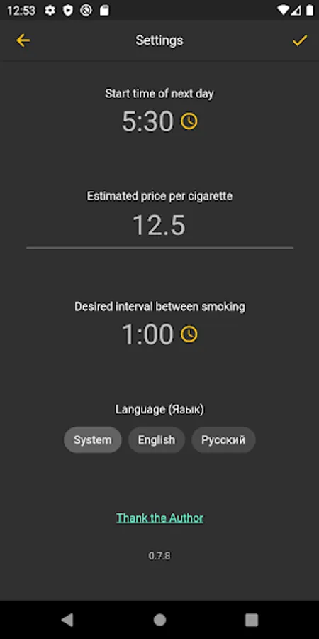 Donate to the author an amount equal to a pack of cigarettes if this application will help you stop smoking.