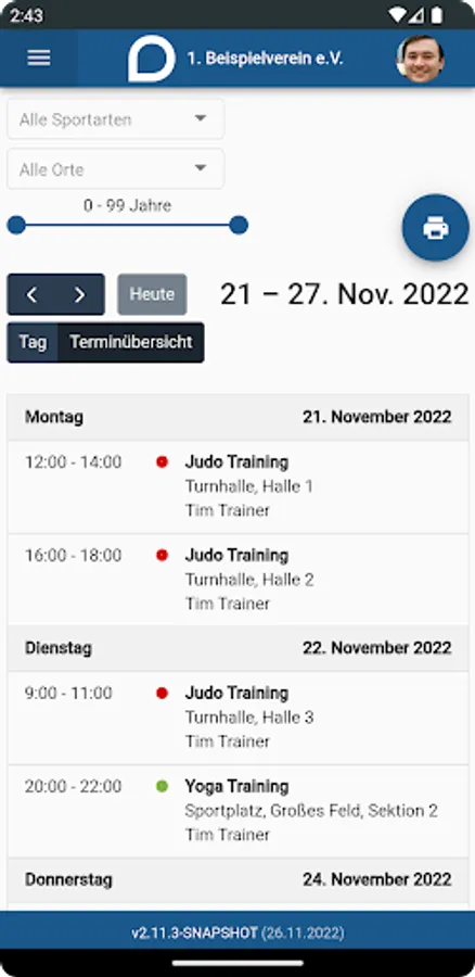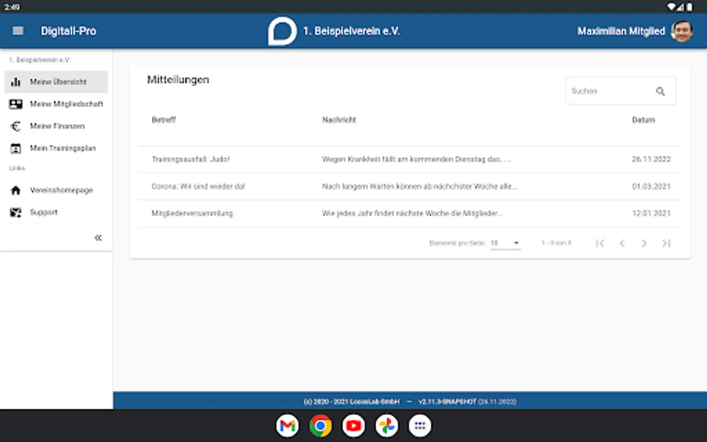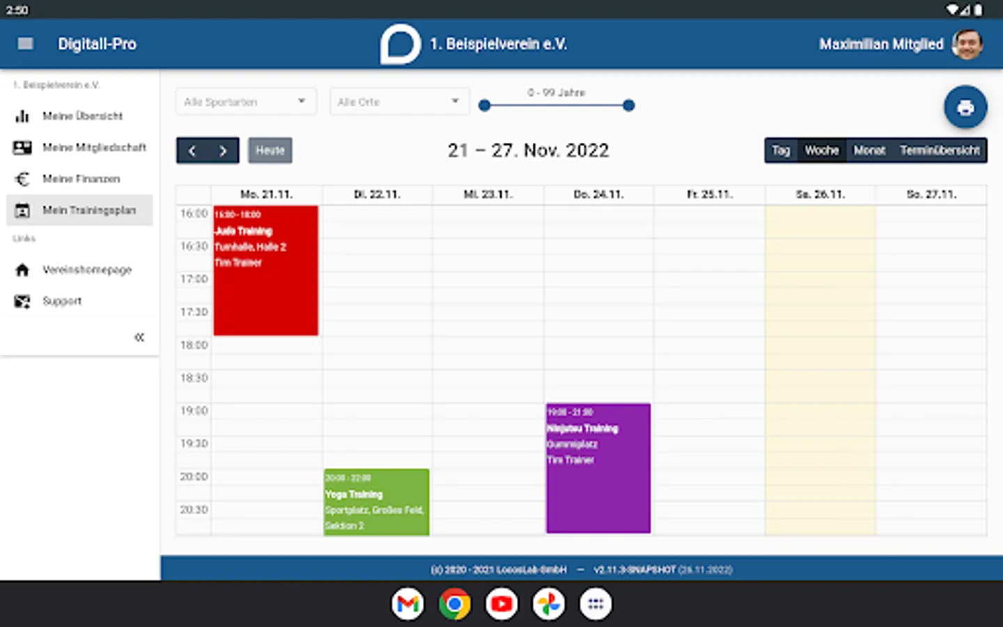 With the app for Digitall-Pro you can make optimal use of your club membership. Save your Digitall-Pro access data on your mobile phone or tablet and you will have direct access to your member data, training calendar, family management and more. Activate the notifications and the app for Digitall-Pro will automatically inform you about new messages published by your club. Of course, it's free and ad-free.