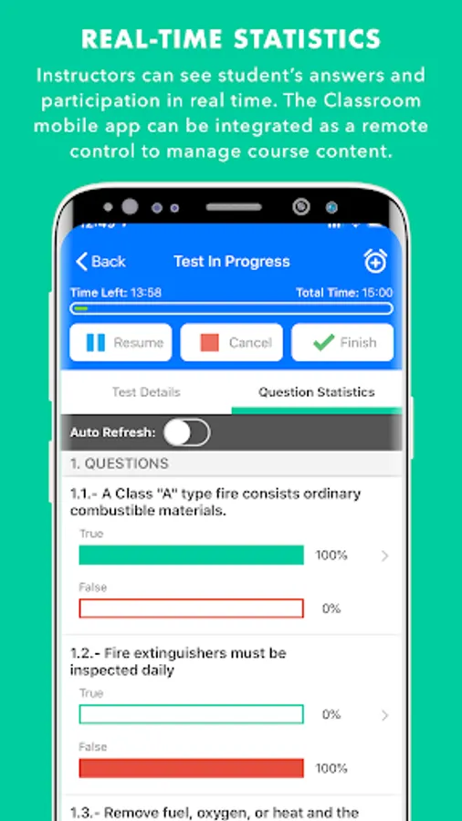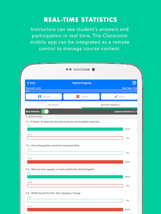 • The ability for students to use their own mobile phones via Wi-Fi to answer questions. The instructor can see the individual student’s answer in real time, which facilitates confirmation of knowledge transfer.
