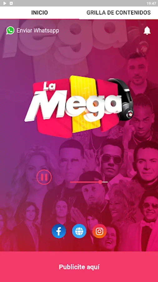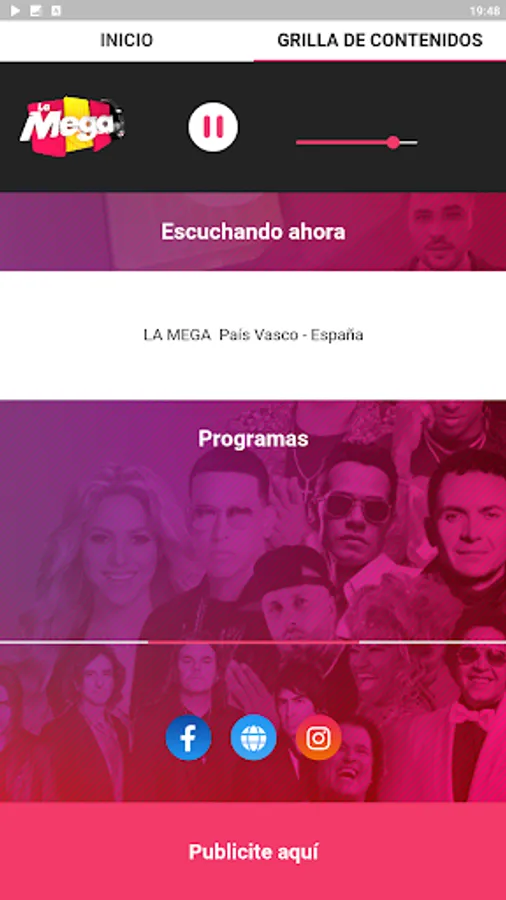 Radio La Mega of the Grupo Radial Norte de España is a radio station with interactive programming and Latin music and varied current affairs aimed at all types of public in the town and the world. Signal that originates in the north from Pamplona / Iruña, Vitoria-Gasteiz, Estella-Lizarra and Miranda de Ebro with a target audience between 22 and 30 years of age and certain specialized hourly farms from 26 to 65 years of age. age. We have been present in the hertzian waves for more than 20 years.