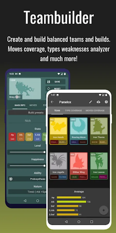 A complete Teambuilder with which you will create the team of your dreams, plus you can share it on our cloud server with other trainers.