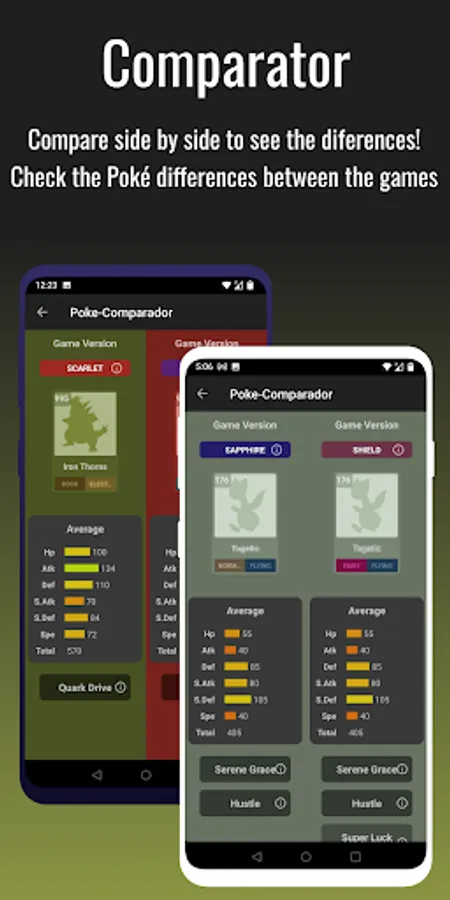 Quickly compare Pokés to see their differences in stats, abilities and types