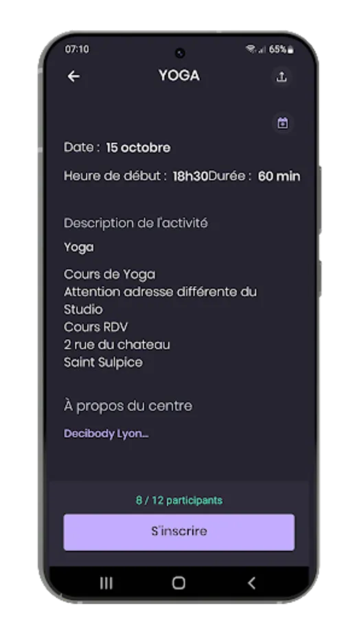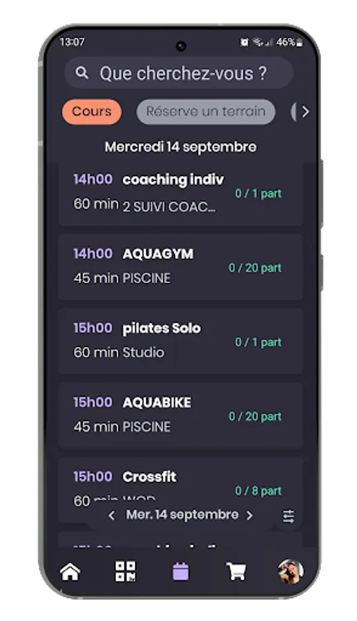 Add your reservations directly to your agenda and receive a notification to remind you of your class. Easily manage your reservations but also your subscriptions, cards or single session from your personal account.
