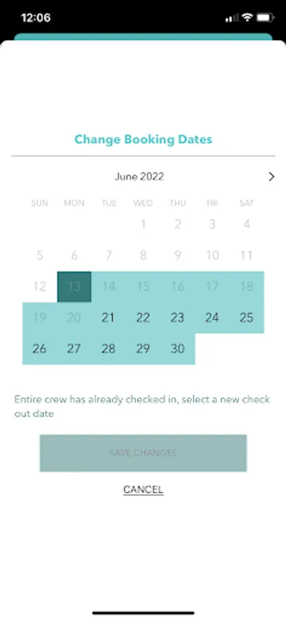 • ‘One touch’ actions for cancelling an entire booking or an individual crew member in the case of an early check out.