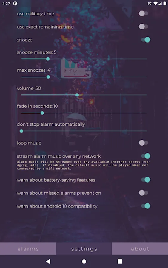 -Snooze mode, with configurable minutes and maximum snooze count.