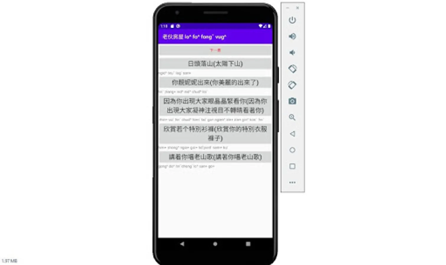 The new sound poems of Hakka dialect in Dapu dialect, as long as you press the gray button, there will be a Hakka dialect in Dapu dialect. If you press the button too fast, there will be no sound. As long as you restart the app, there will be a sound.