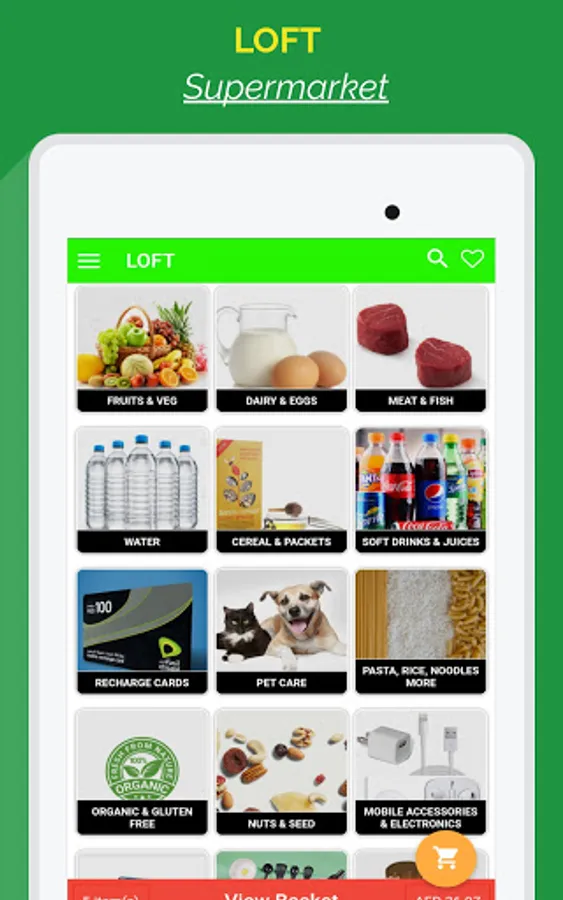 Loft Supermarket Application allows its users to buy and order commodities like daily grocery items online with best prices and Free Home delivery Facility.