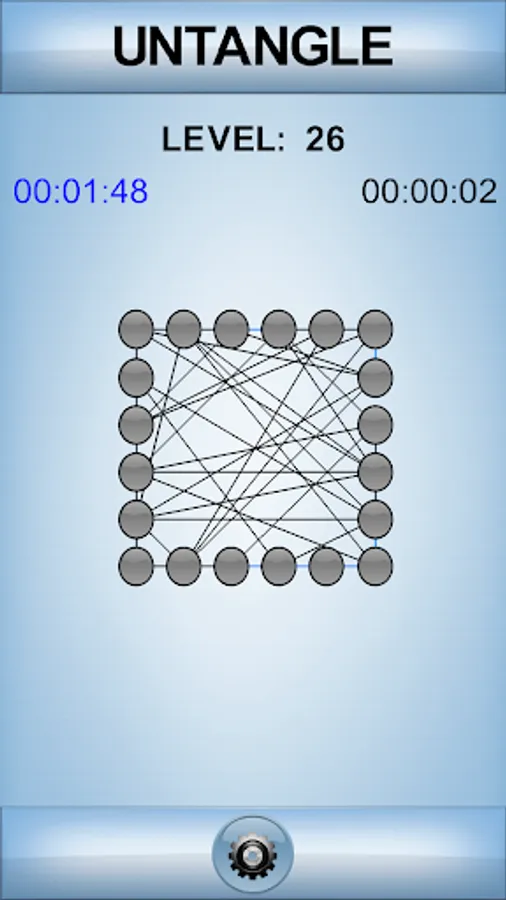 Your task is to disentangle a pattern consisting of points connected by lines and make sure that the lines do not intersect. At each level, the pattern changes, and the game becomes more difficult and more interesting.