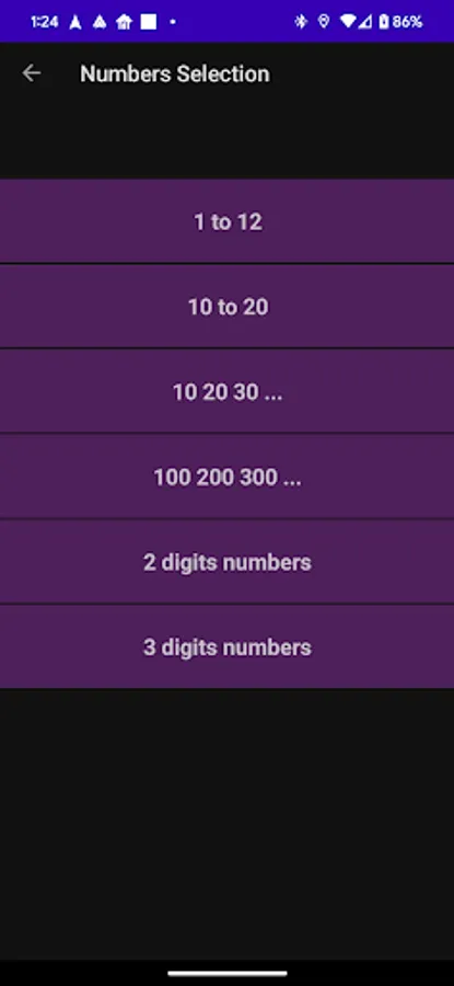 • numbers learning for different levels: 1 to 12, 10 to 20, count from 10 to 100, hundreds, 2 digit numbers, 3 digit numbers, etc