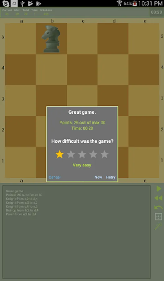 You can rate individual boards from 1 to 5 stars to know how difficult the game was when you are looking at the games' history.