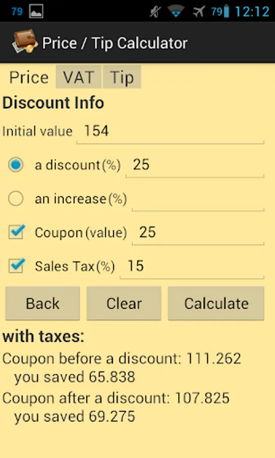 The application has tools that helps you calculate: