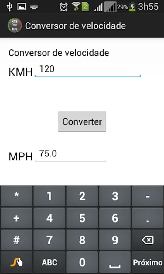 Convert one kilometer per hour speed (KMH) to miles per hour (MPH)