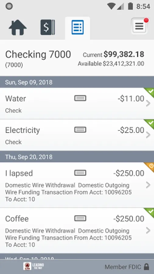 • View recent transactions, including check images