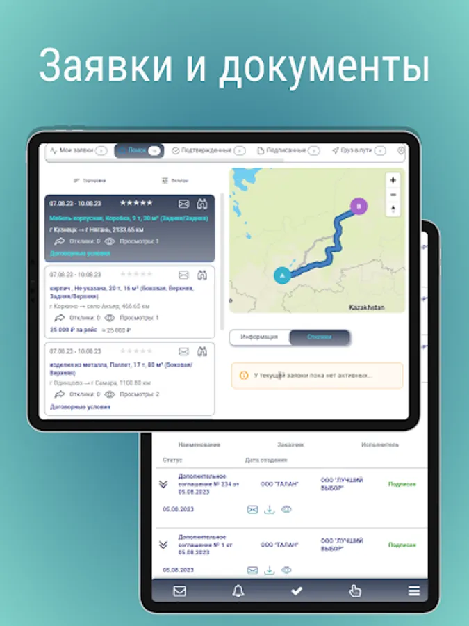 You will always know where your cargo is. Since you can track the location of the car and cargo online. All stages of the transaction and the entire document flow are reflected in your personal account, they are available at any time in the form of a history.