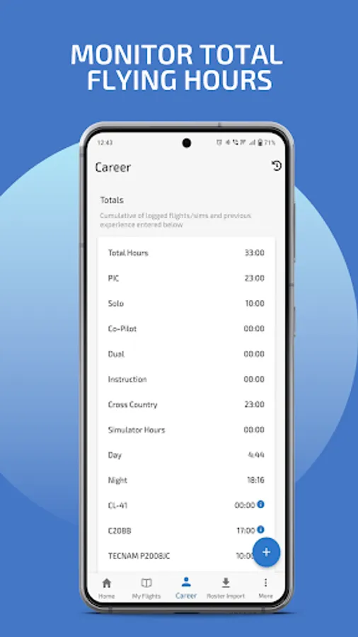 * Forget manual night calculations and totalling each page of physical logbook.