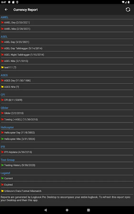* Log Certificates, Ratings, History Items (Medicals, Flight Reviews, etc.)