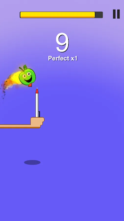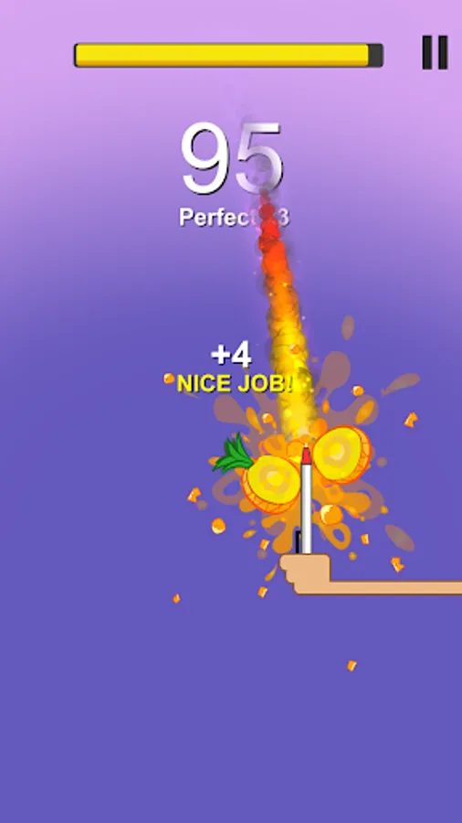 - The rules are simple: hit the perfect center in a row (apple, pineapple fruit, divide them into two equal parts)!
