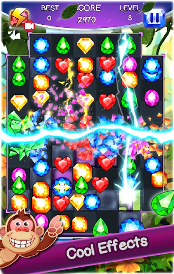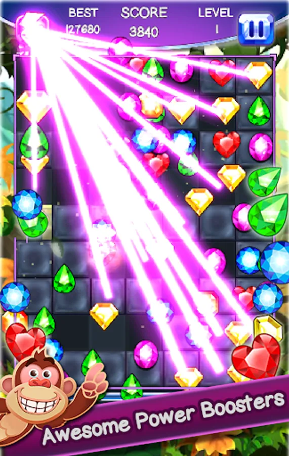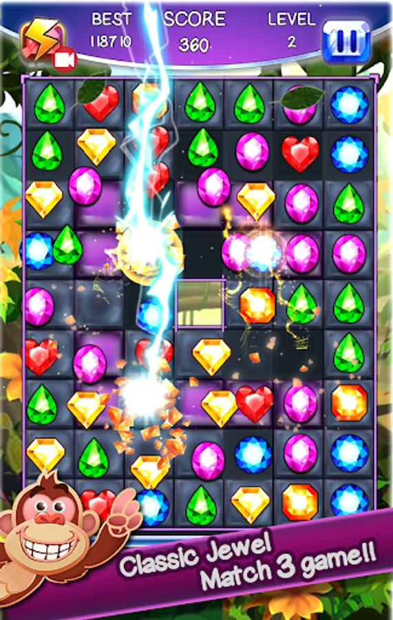 • Match 4 jewels can win the power jewel and 1 lighting.