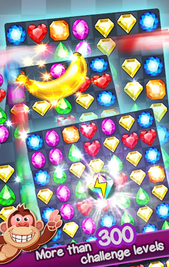 ★ Jewel n Banana Legend: is an addictive and delicious adventure filled with colorful gem crunching effects and well designed puzzles for you to play in subway time! With candy style jewels to smash and eliminate in each level, Jewel Blitz is twice the fun but familiar to play. So let's get started to crush the saga now!