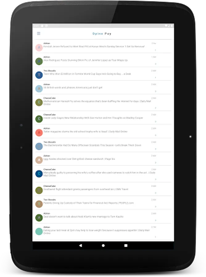 A list of websites from which you may share articles is displayed after you tap "Article Sharing" in Opine Pay's menu.