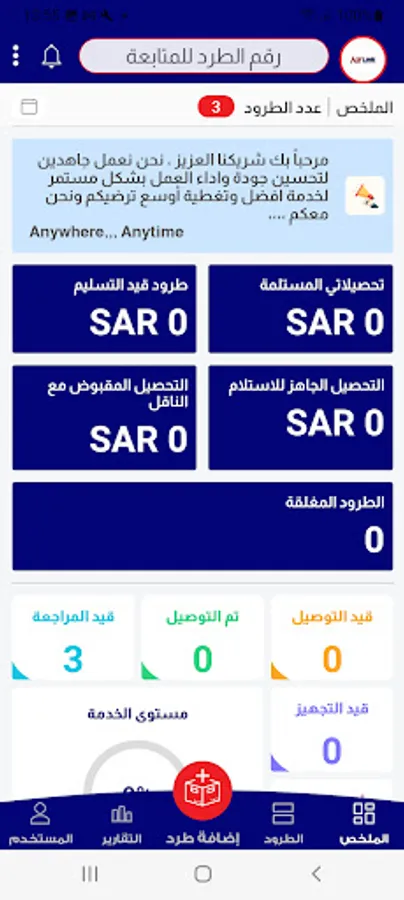 يتيح التطبيق لزبائن الشركة إدارة ومتابعة الطرود الخاصة بهم من لحظة اضافتها على النظام ولغاية تسليمها، بالإضافة لإدارة ومتابعة التحصيلات المالية وحالاتها لتسهيل متابعتها مع الشركة.