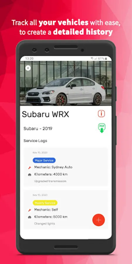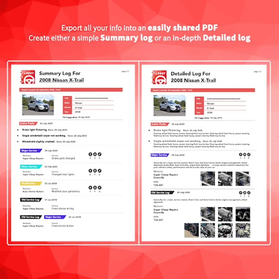 - Export a PDF summary of your vehicle’s maintenance history