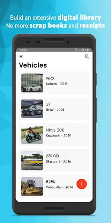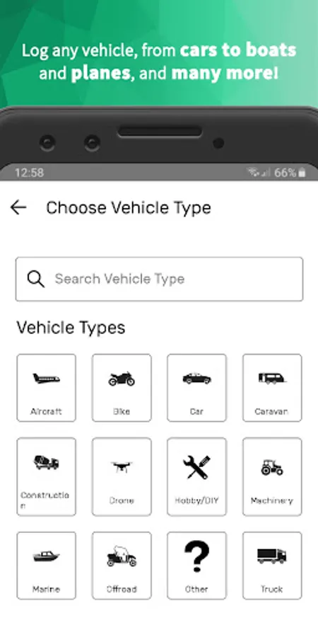 - Add any type of vehicle: Car, Motorcycle, Truck, Boat, Heavy Vehicle, Plane, RV or even a Hobby vehicle