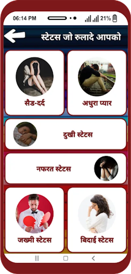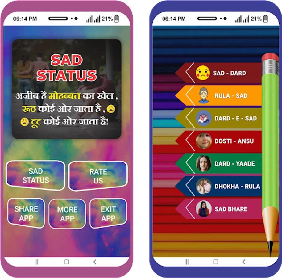 Sad Status, Shayari, SMS & Quotes Collection app contains best collection of Hindi sad Status in Hindi.