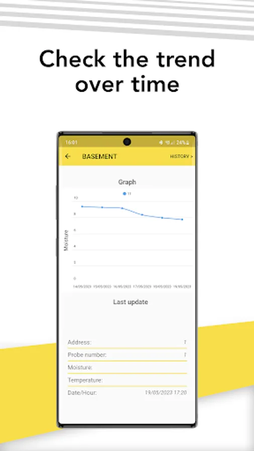 • View the data history in graphic/table format and export it in .csv format