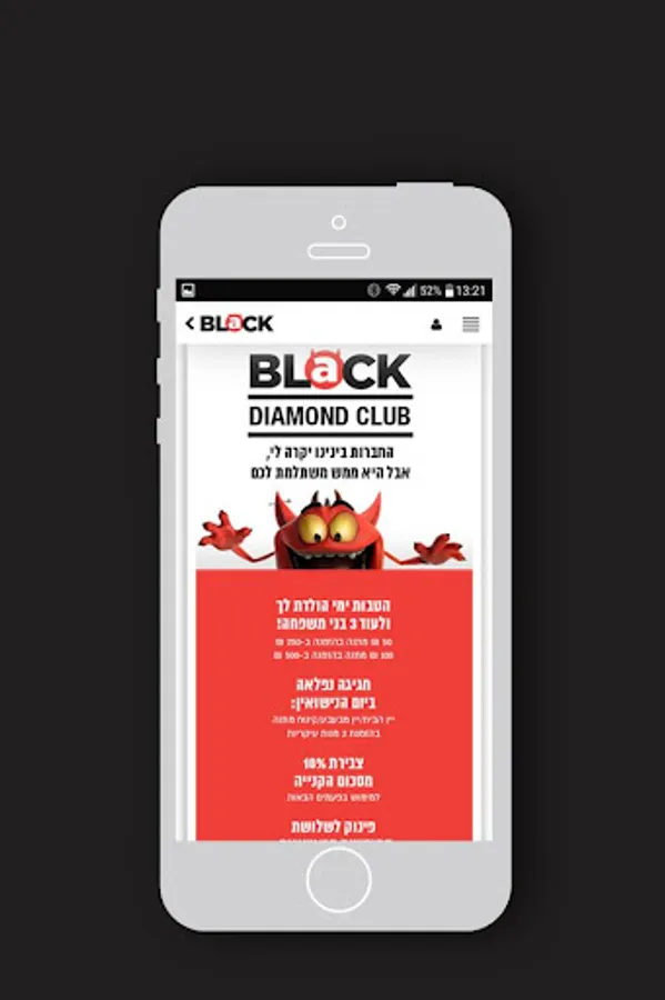 Black's loyalty is now also a smartphone. There is no more need for magnetic card, all your benefits and surprises app exclusive to members, now at the touch of a button.
