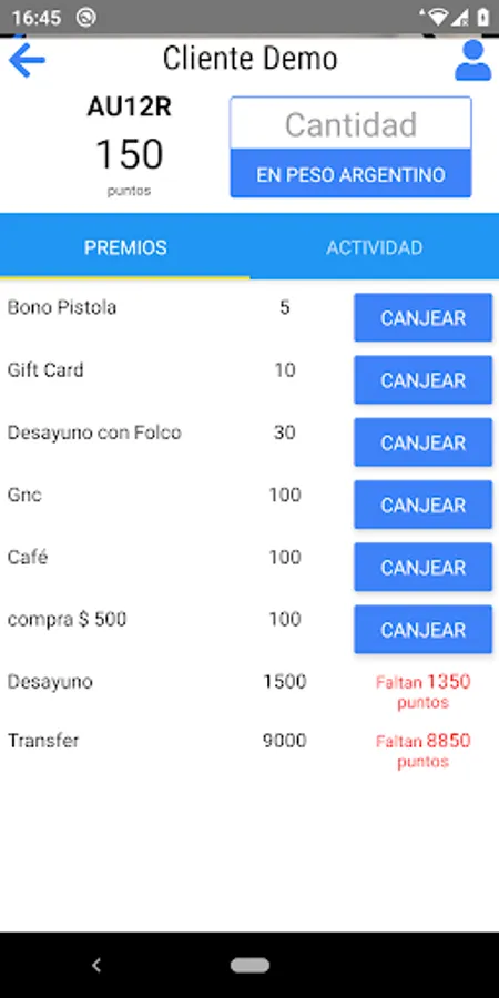 - Make the exchange (delivery of a prize in exchange for accumulated points)