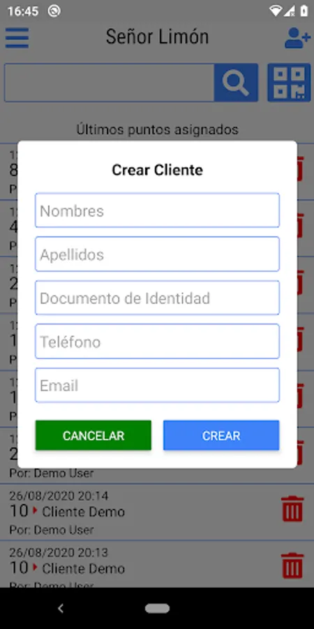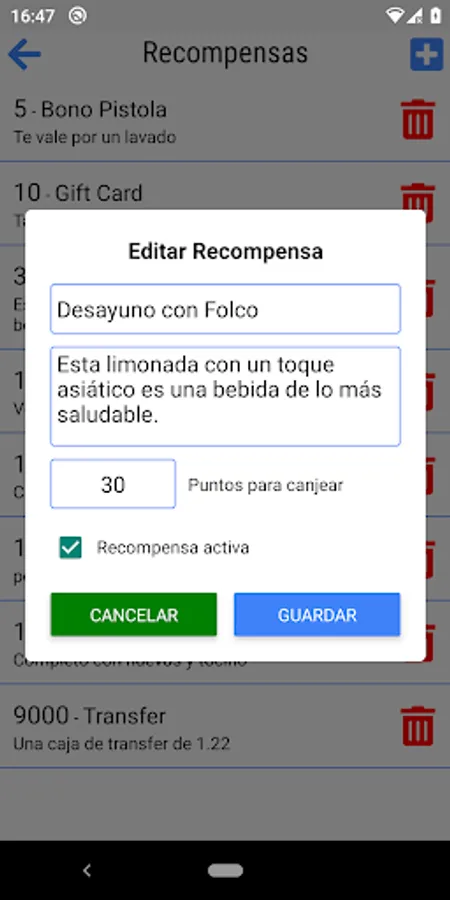 - Assign points, also entering the amount of consumption (if this option is activated)