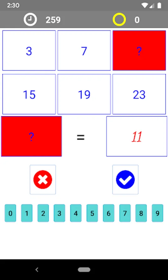 The application will automatically generate a sequence of numbers with a random algorithm of 6 numbers and hide any number.You will find the rule of the number and enter that number in the mark? The game has 3 easy and medium levels. For each level is a period of time you have to find the crossword, the time you do not find you will lose. You answer correctly the system of adding points for you and automatically generate a new rule.