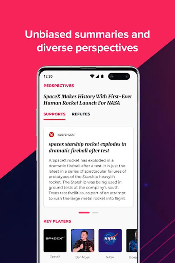 The AI based newsfeed delivers diverse perspectives on the stories you care about so you can compare the viewpoints of journalists and publishers across the political spectrum. Our AI will pick out the most controversial claim from a story and give sources that both support and refute that claim, so you can come to your own, holistic conclusions.
