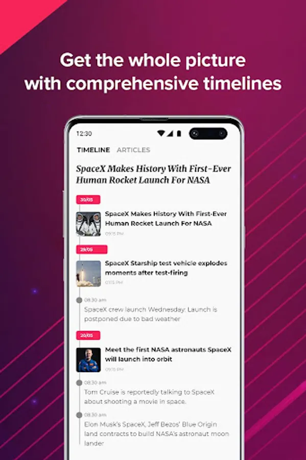 Never miss a beat with Logically’s timeline feature. We know how hard it is to stay on top of a 24-hour news cycle; Logically’s automated timelines will keep you up to date with every development across your favourite topics.