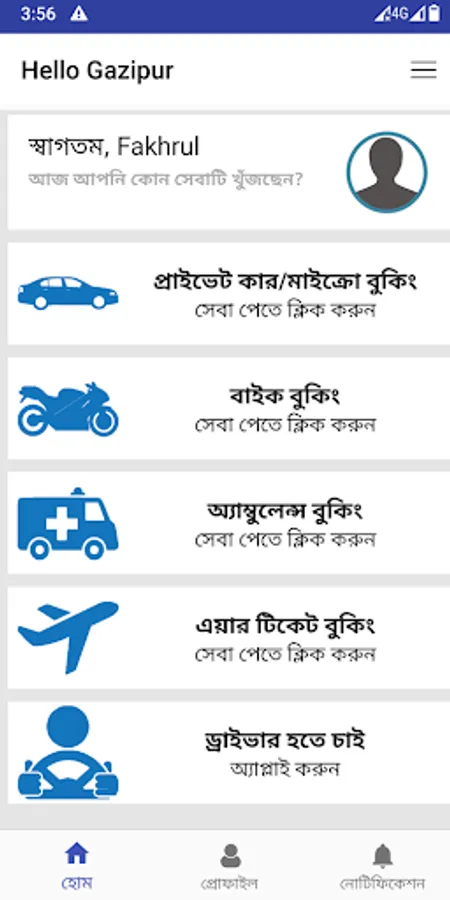 You can easily book car, micro, bike, ambulance and air tickets booking using the Hello Gazipur application.