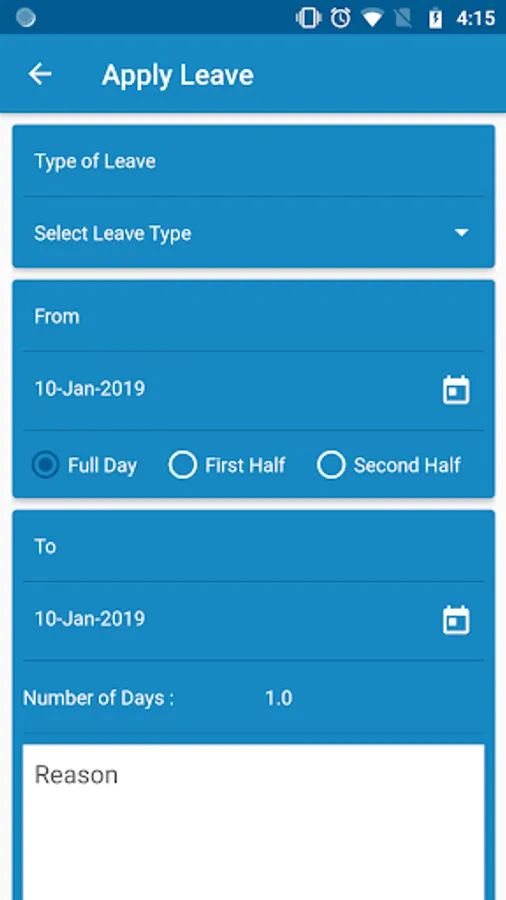 - The user can Apply for Leave via App.