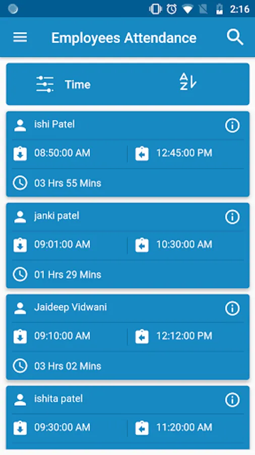 - Daily Punch In and Punch Out Information.