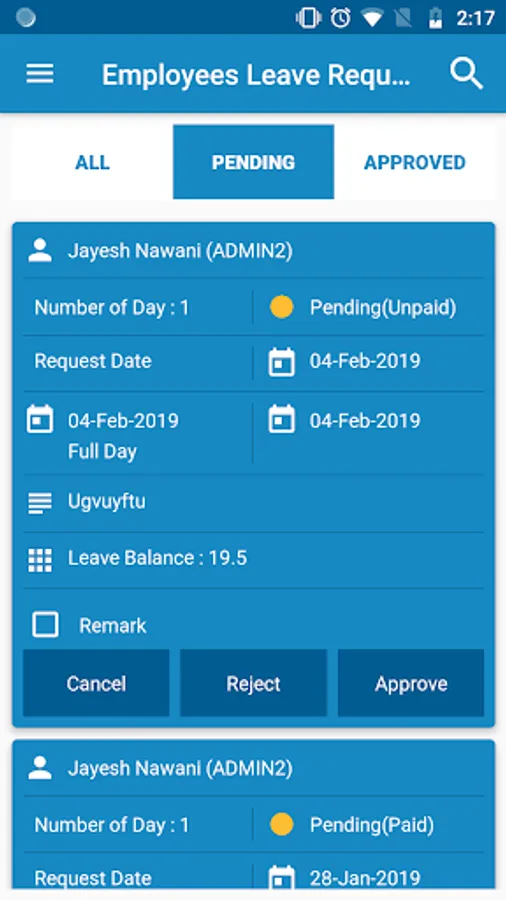- HR/Admin can easily able to change Leave Application status via App.