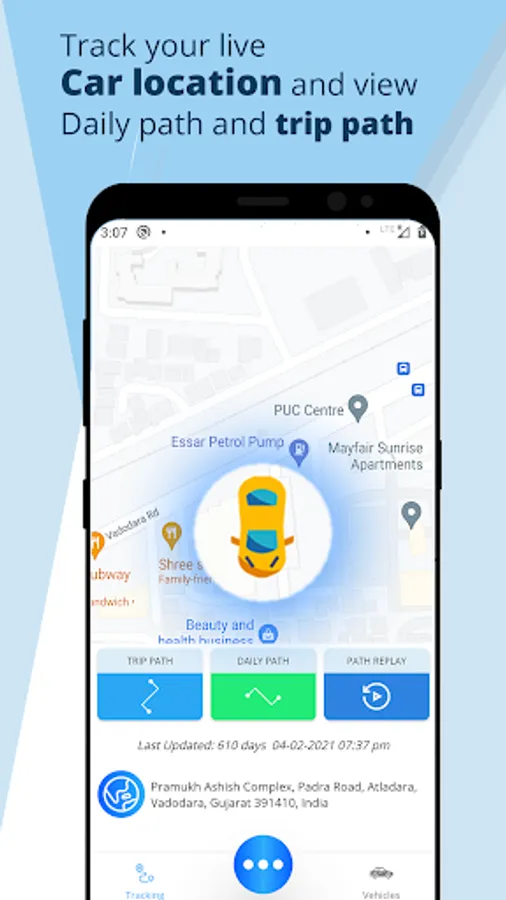 - You can view the Trip path, Daily path with selected date of your car any time