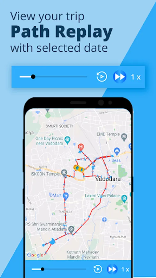 - You can view replay of your daily trip path of your vehicle with fast forward functionality